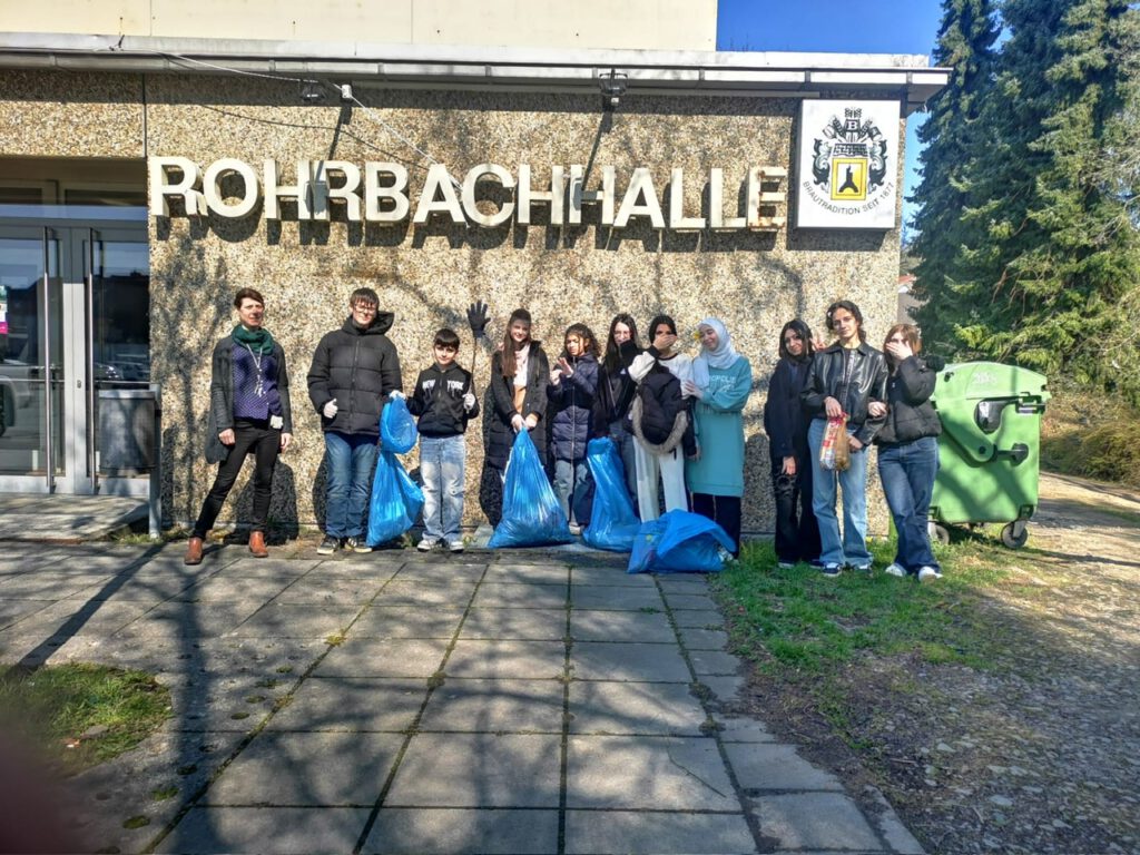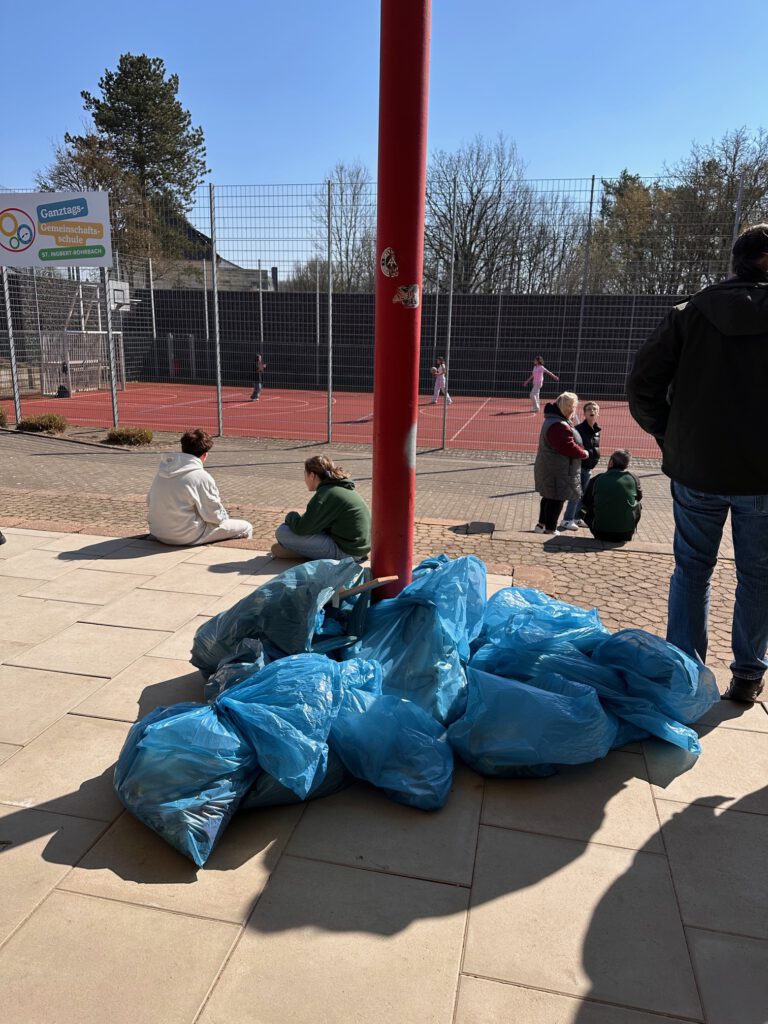 Bei der Picobello-Aktion wurde rund um unsere Schule ordentlich aufgeräumt: An der Rohrbachhalle, im Wohngebiet und am Sportplatz waren mehrere Gruppen unterwegs und sammelten Müll. Bei sonnigem, aber ziemlich windigem Wetter kam einiges zusammen. Der verrückteste Fund: ein Lenker von einem Kinderfahrrad!